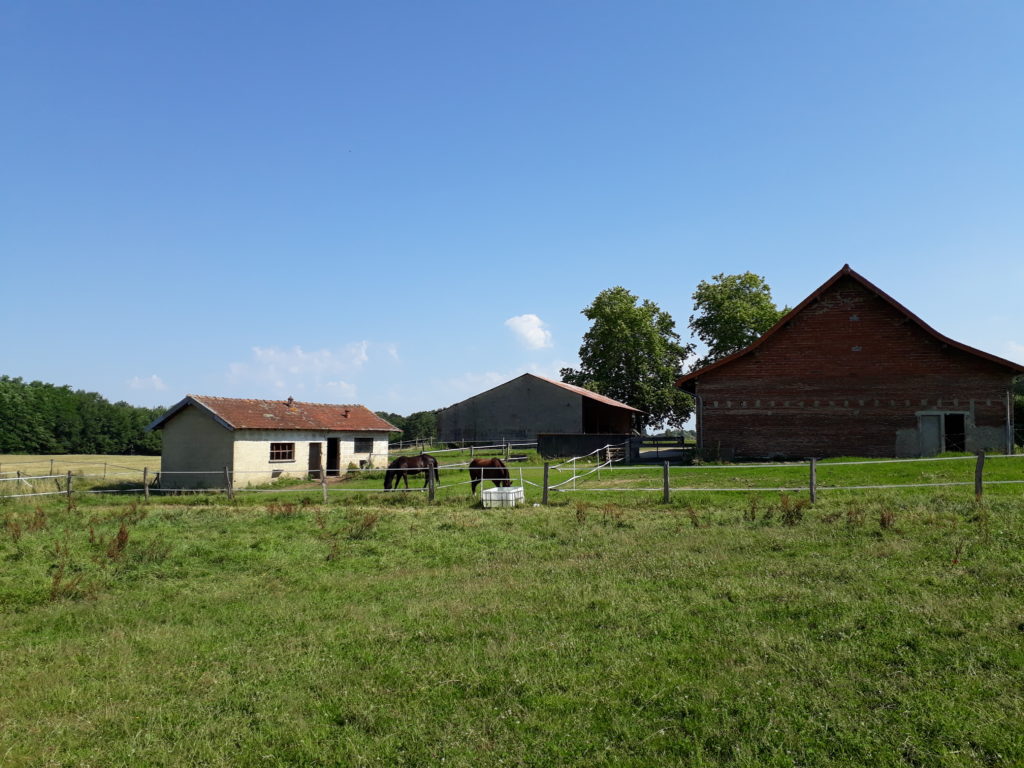 Pension abri/ terrasse avec accès au pré 24h/24,en binôme.